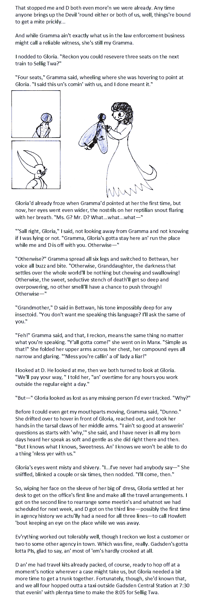 Right now, I've got the first four pages looking more or less the way I want them to, but be aware there may be changes coming if things get too ungainly. Or maybe I'll finally get myself to think like the proper sort of idiot, and all my problems will be solved!