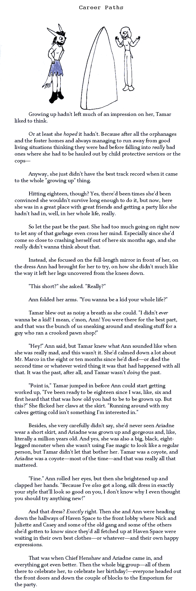What a coincidence! I've got my birthday between the time that this page goes up and the next page goes up! Of course, I'm gonna be more than three times older than Tamar here, but then those of us in the Real World age a lot faster than folks who live in the Webcomic World...