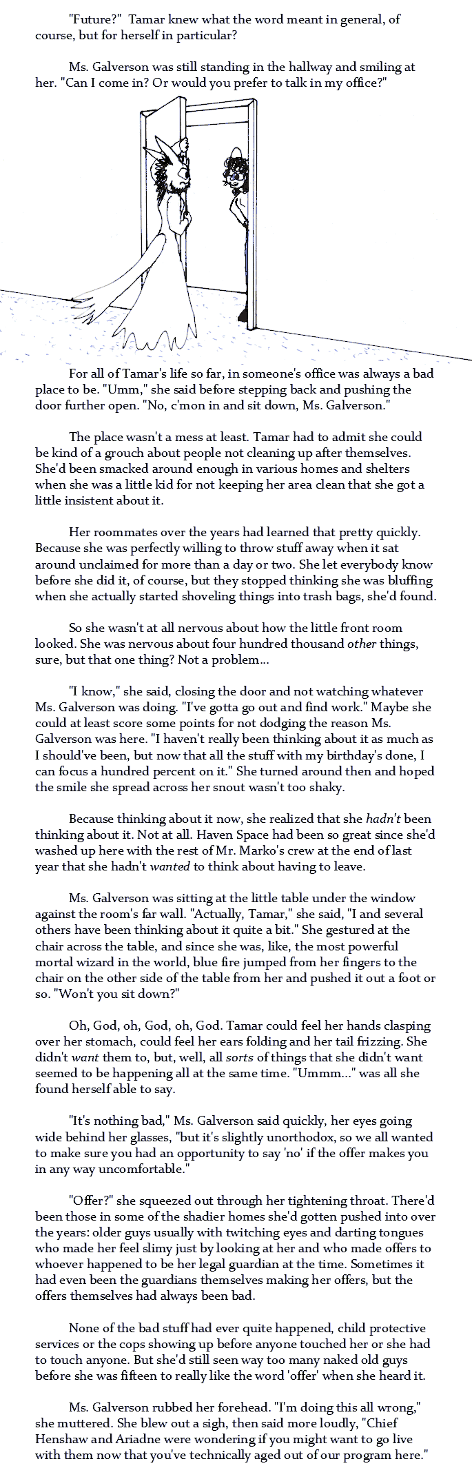 All the stuff with Ariadne and Chief Henshaw goes back to their first meeting in the middle of our 98th storyline, "Jurisprudence," and wends throughout the next eight or nine years of stories. Suffice it to say that they're a bit of an item.