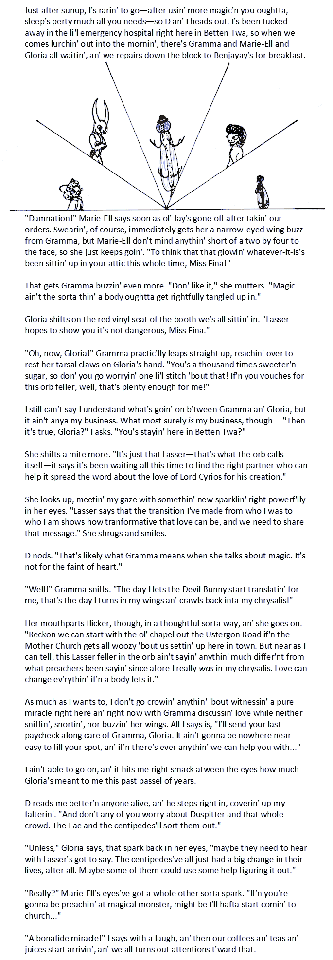 Next, we'll head back to Gadsden and see what's going on with Harissa Tamar. She's been in the background largely since she first showed up in the comic among a crowd of juvenile deliquents at the bottom of the page near the beginning of our 75th storyline, "Contraindicated," but she started coming into her own during the course of our 105th storyline, "Leech." And she'll be at the center of our upcoming 134th storyline, "Career Paths."