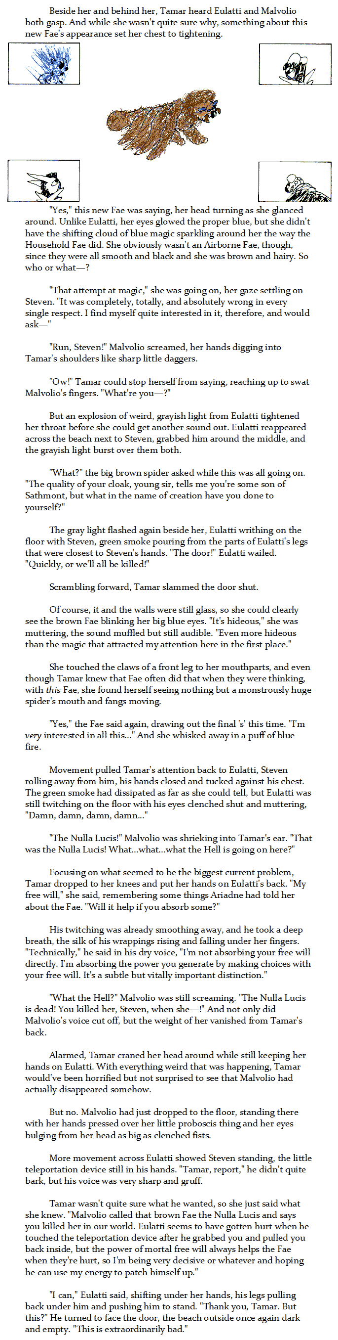 It's been close to 20 years since I was regularly drawing the Nulla Lucis - she made her first appearance during our 18th storyline, "Administrative Oversight," and made her final appearance during our 54th storyline, "Totenfeier" - so I hope folks'll forgive me if she looks a little different. We'll find out, I guess, if she's still just as monstrous, though. Maybe next week!